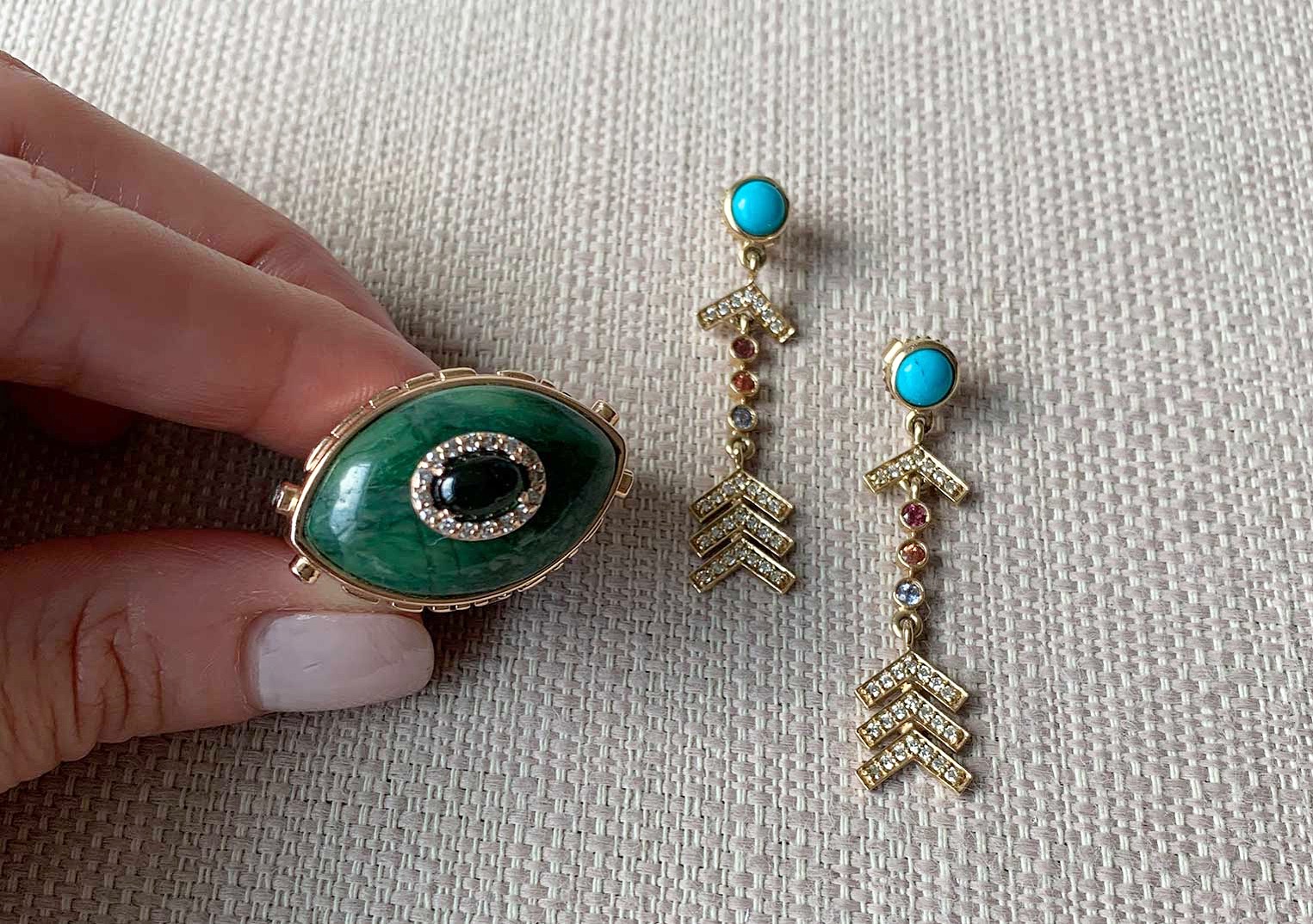 « Marlo Laz Je Porte Bonheur Eyecon Ring with Brazilian Jade and Green Tourmaline