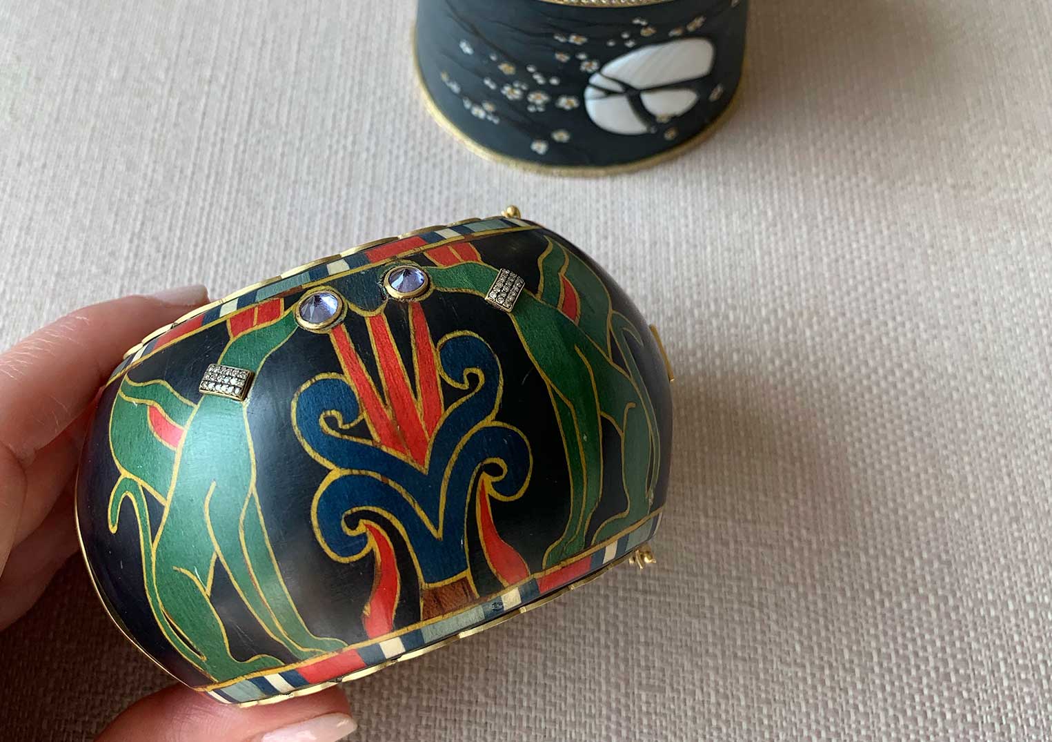 Silvia Furmanovich 18K Handcrafted Marquetry Egyptian Bangle with Tanzanite and Diamonds