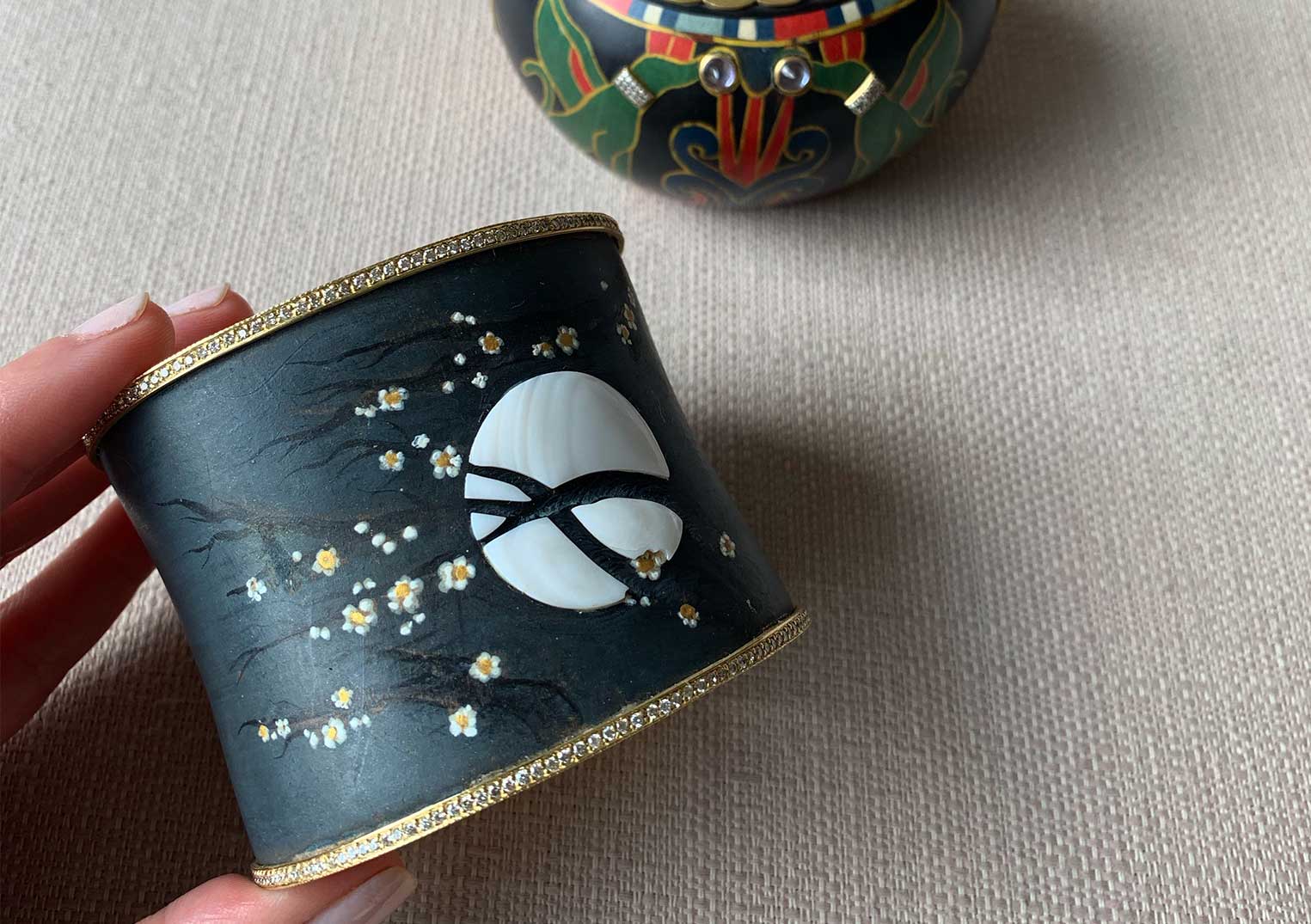Silvia Furmanovich 18K Moonlight Cherry Blossom Marquetry Cuff with Mother of Pearl