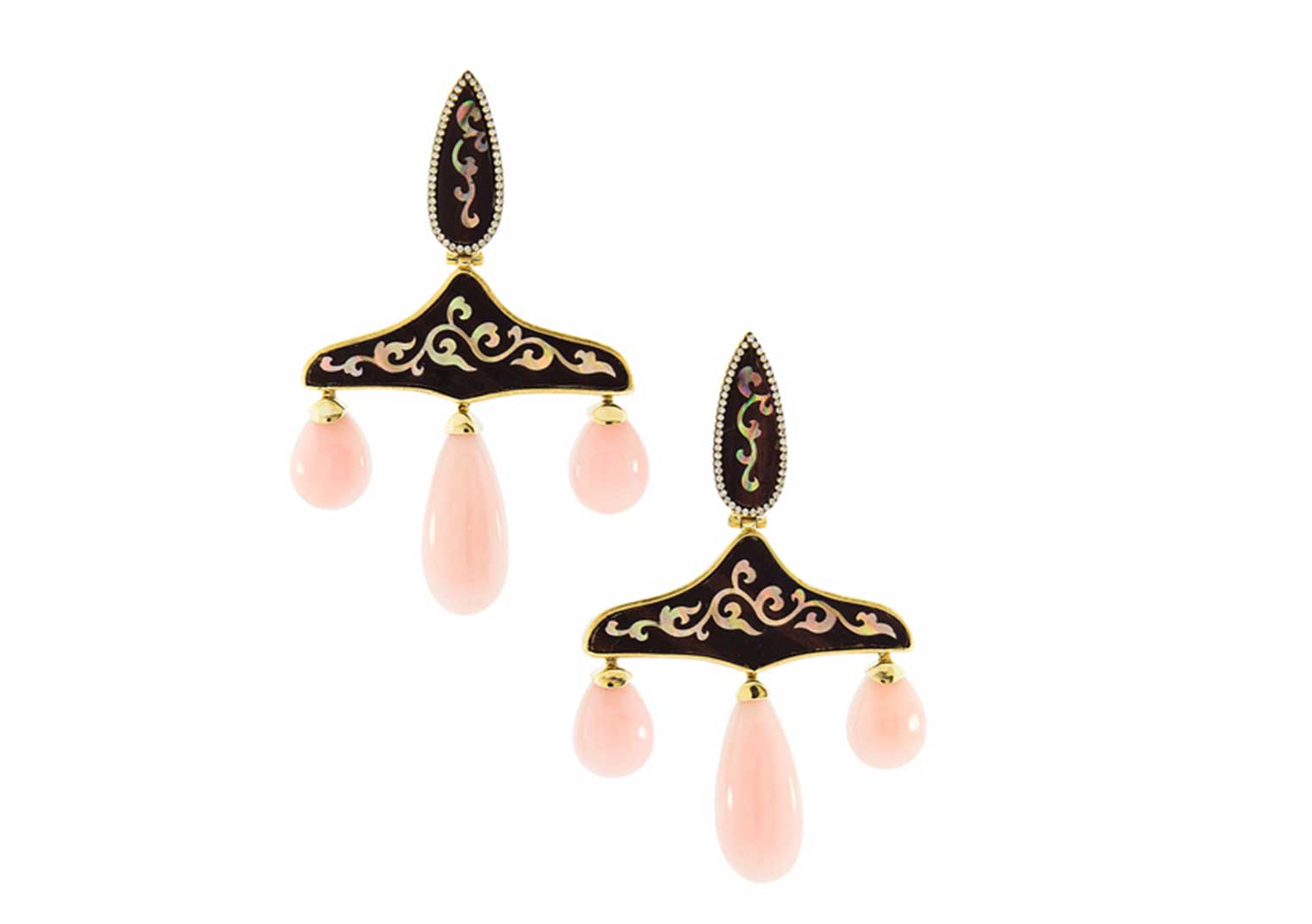 Silvia Furmanovich 18K Rose Gold Marquetry Abalone Earrings with Diamonds and Pink Opal