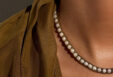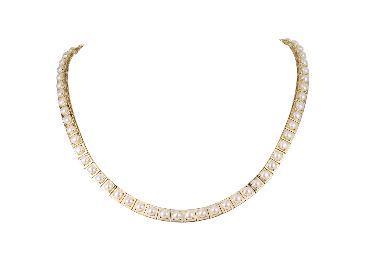 TYPE LEGGO Pearl Tennis Necklace in 14 Karat Yellow Gold with Freshwater Pearls, 23.68 GM of Yellow Gold